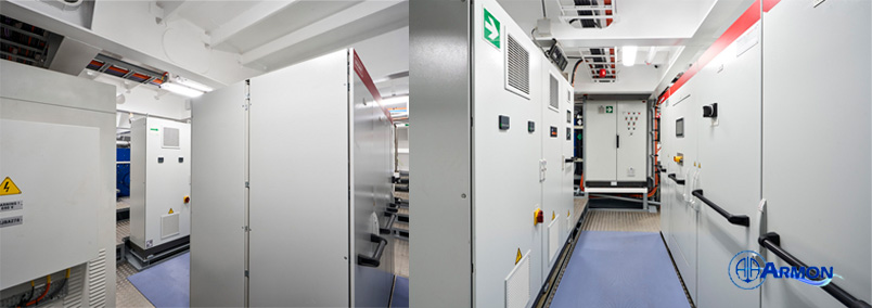 Esta red consta de diversos cuadros de distribución alimentados por fuentes cargadoras y grupos de baterías para casos de emergencia. Además de los cuadros de 440V, 230V y 24V, centros de control de motores, ventiladores, etc. Insyte Instalaciones se ha encargado de toda la instalación y conexionado de los equipos que existentes a bordo, así como de la iluminación, atendiendo a todos los detalles necesarios para el mayor confort de la tripulación.